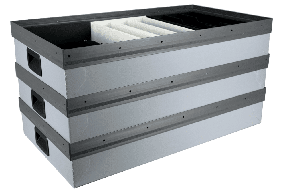 Unsere HKP-Stapelbox ist die perfekte Verpackungs-Lösung im Ladungsträger-Bereich. Mit konturgeschnittenen Zahnleisten, Fixierungen oder Einlagen aus PE-Schaumstoff werden die Mehrwegverpackungen in vielen Industriebereichen, wie z.B. Automobilindustrie oder Luftfahrt, eingesetzt. Unser Stapelrandprofil sorgt für einen stabilen Stand.